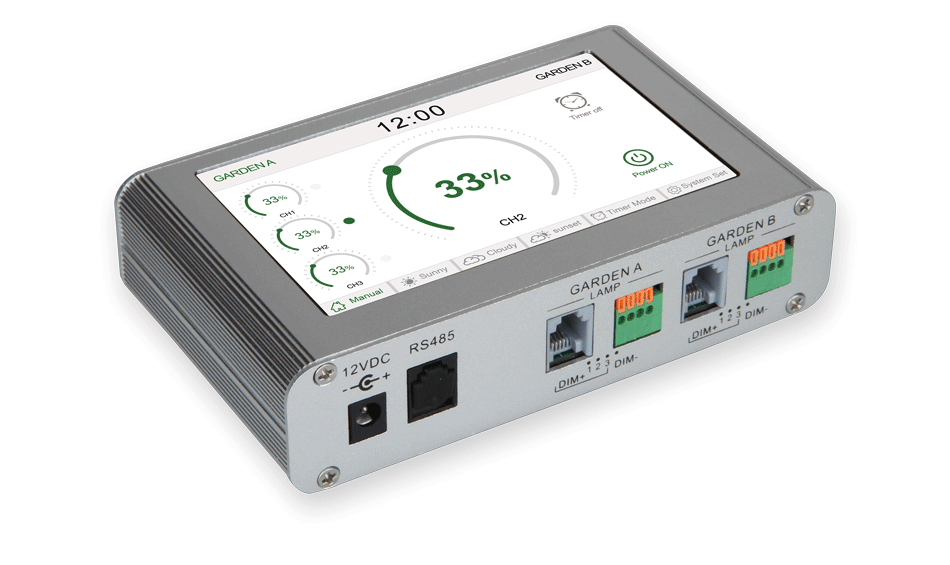 This controller can be directly used to work with all SunPlus LED lights which have the RJ11 ports (such as the Sundro, SunPAR, MaxPAR, etc).